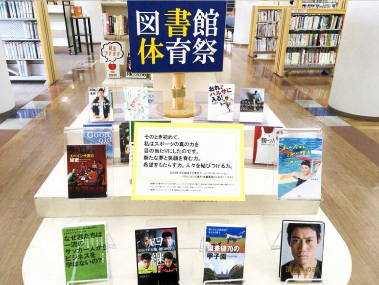 津島市立図書館でもこのスポーツイベントの波に乗っかりたい、いや、あやかりたい!ということでスポーツをテーマにした特集を企画しました。選手の心に迫る自伝や、スポーツをテーマにした小説、トレーニング術など、スポーツにまつわる本を集めて紹介しています。