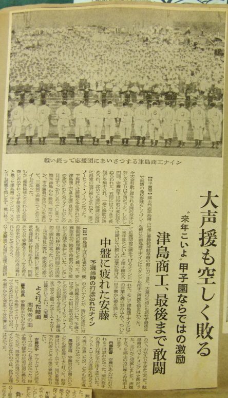 ちなみに、この試合の津島商工の応援は鈴木PTA会長ただ一人だった。1957.07.27.
