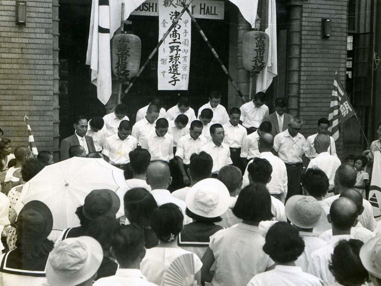 午後3時、津島駅に到着。すっかり日焼けした野球部員たちを家族、級友、そして津島市民が出迎えた。一同はそのまま津島市役所へ挨拶に立ち寄り、竹内市助役からは「敗れたとはいえ、郷土津島の名を全国にあげて下さったナインに厚く感謝する」と温かい言葉を送った。
