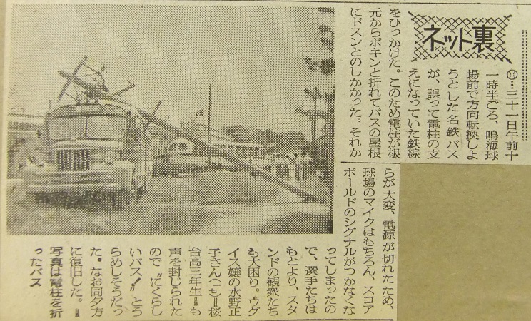 地区予選準々決勝 津島商工 4-1 一宮(鳴海球場)1 2 3 4 5 6 7 8 9 計 一宮 0 0 0 0 0 0 0 0 1 1 津島商工 0 1 0 0 0 3 0 0 × 4 一宮はDグループ最強豪との評判だったが、津島商工が一方的に試合を進める番狂わせを演じ、スタンドの大喝采を浴びた。6回には飯田選手、鯉淵選手のヒットと水谷選手の犠打フライで追加点。さらに鈴木選手の好打で3点目。