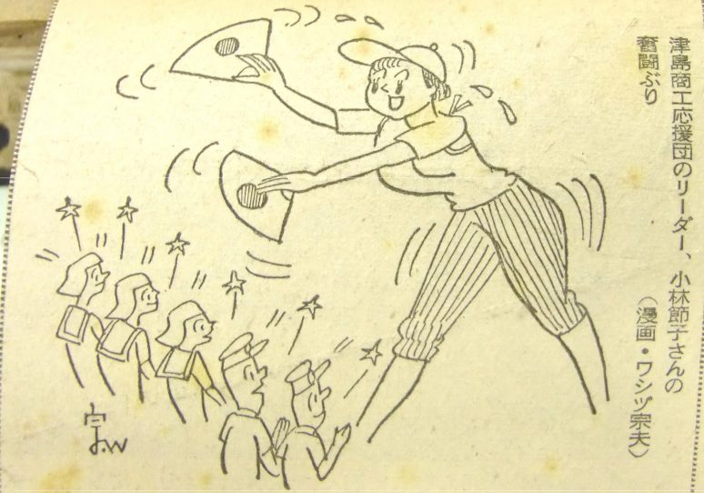 この試合から津島市議団も応援に参加。応援旗がないため、この年作ったばかりの市章旗を振り回して声援を送った。1957.08.02.